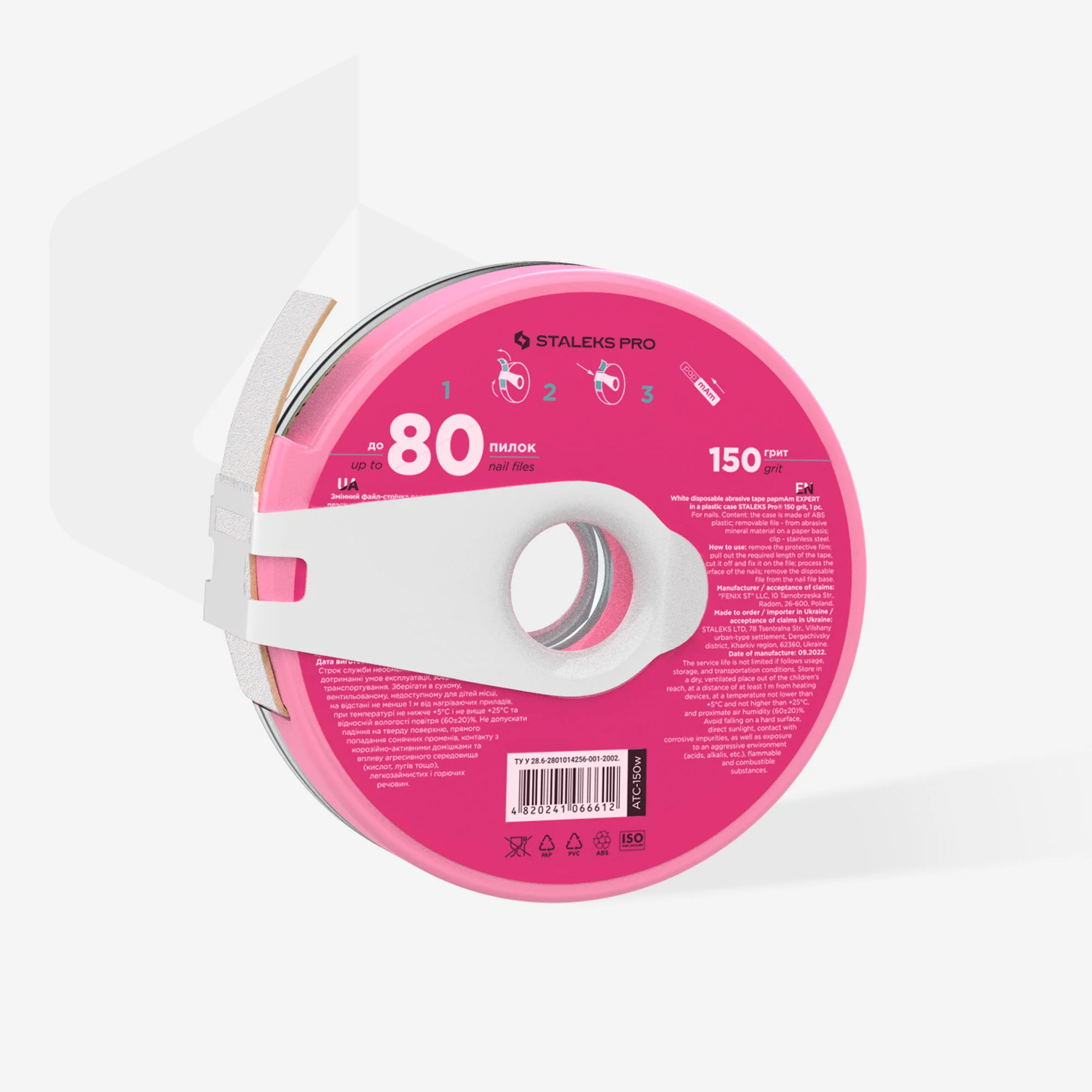 - La abrasividad de grano 150 está diseñada para limar la longitud y el grosor, así como para el acabado final de las uñas artificiales.